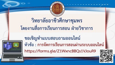 ขอเชิญทำแบบสอบถามออนไลน์ หัวข้อ : การจัดการเรียนการสอนผ่านระบบออนไลน์