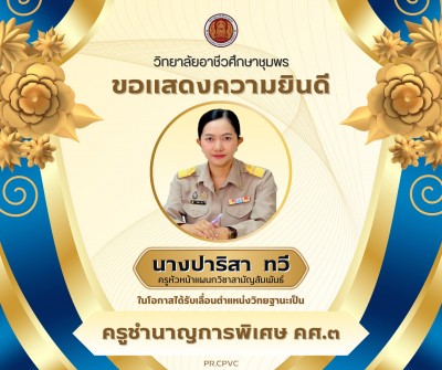 🎉วิทยาลัยอาชีวศึกษาชุมพรขอแสดงความยินดี🎉 ✨นางปาริสา ทวี✨