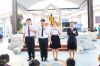 นางสาวจีรา แกล้วกล้า ครูประจำแผนกการบัญชี ได้ขึ้นพบปะและเชิญชวนร่วมให้กำลังใจแก่นักเรียน นักศึกษา