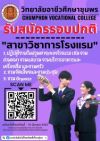 - พิมพ์ใบสมัคร พร้อมชำระค่าลงทะเบียนเรียน ณ งานทะเบียน วิทยาลัยอาชีวศึกษาชุมพร (*เฉพาะสาขาที่ไม่ต้องสอบคัดเลือก)