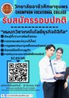 รับสมัครตั้งแต่วันนี้ - 15 มีนาคม 2567 (ในวันและเวลาราชการ) ณ ห้องทะเบียน อาคารสำนักงาน วิทยาลัยอาชีวศึกษาชุมพร