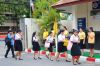บรรยากาศยามเช้าของวิทยาลัยอาชีวศึกษาชุมพร คณะครูยืนต้อนรับนักเรียน นักศึกษา และตรวจความเรียบร้อยของนักเรียนนักศึกษาก่อนเข้าวิทยาลัย