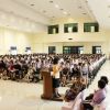 นายศักร์สฤษฏิ์ หนูเอียด รองผู้อำนวยการฝ่ายพัฒนากิจการนักเรียน นักศึกษา ประธานในพิธีการซ้อมรับประกาศนียบัตรแก่ผู้สำเร็จการศึกษาระดับชั้นปวช.3 และนักศึกษาระดับชั้นปวส.2 ประจำปีการศึกษา 2560 ในวันพฤหัสบดีที่ 22 มีนาคม 2561 ณ หอประชุมศูนย์ราชการจังหวัดชุมพร