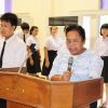นายศักร์สฤษฏิ์ หนูเอียด รองผู้อำนวยการฝ่ายพัฒนากิจการนักเรียน นักศึกษา ประธานในพิธีการซ้อมรับประกาศนียบัตรแก่ผู้สำเร็จการศึกษา