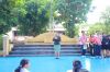 ภาพบรรยากาศเช้านี้ คณะผู้บริหาร คณะครูยืนต้อนรับ และอำนวยความสะดวกที่จอดรถของนักเรียนนักศึกษา และกิจกรรมหน้าเสาธง บริเวณอาคารอเนกประสงค์(โดม)
