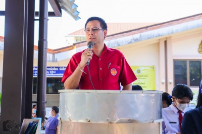 นายจิรพงษ์ โลพิศ รองผู้อำนวยการวิทยาลัยอาชีวศึกษาชุมพร ขึ้นพบปะและให้โอาวาทแก่นักเรียน นักศึกษาในกิจกรรมหน้าเสาธง