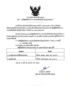 ประกาศรายชื่อผู้มีสิทธิ์เข้ารับการประเมินเพื่อคัดเลือกเป็นลูกจ้างชั่วคราว