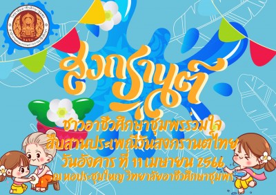 ขอเชิญชวนคณะผู้บริหาร คณะครู บุคลากรทางการศึกษาเข้าร่วมโครงการ ชาวอาชีวศึกษาชุมพร ร่วมใจสืบสานประเพณีวันสงกรานต์ไทย ในวันอังคาร ที่ 11 เมษายน 2566 ณ หอประชุมใหญ่ วิทยาลัยอาชีวศึกษาชุมพร