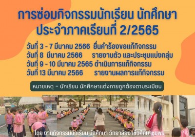 กำหนดการซ่อมกิจกรรมนักเรียน นักศึกษา ประจำภาคเรียนที่ 2/2565 ‼️ #งานกิจกรรมนักเรียนนักศึกษาวิทยาลัยอาชีวศึกษาชุมพร