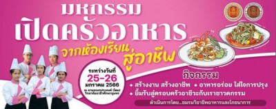 เชิญชวนทุกท่าน เข้าร่วมชมนิทรรศการห้องเรียนอาชีพ การแนะแนวการศึกษา ร้านจำหน่ายอาหาร การรังสรรค์อาหารคาว หวาน งามวิจิตรศิลป์งานแกะสลักผัก ผลไม้