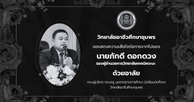 วิทยาลัยอาชีวศึกษาชุมพร ขอแสดงความเสียใจ ด้วยความเคารพและอาลัยอย่างสุดซึ้ง ต่อการจากไปของ นายภักดี ดอกดวง รองผู้อำนวยการวิทยาลัยเทคนิคจะนะ
