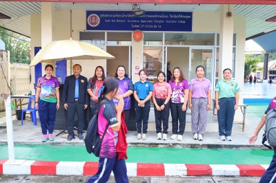 บรรยากาศเช้านี้ คณะผู้บริหาร คณะครูให้การต้อนรับ และอำนวยความสะดวกในการข้ามถนนและที่จอดรถของนักเรียนนักศึกษา และกิจกรรมหน้าเสาธง บริเวณอาคารอเนกประสงค์(โดม)