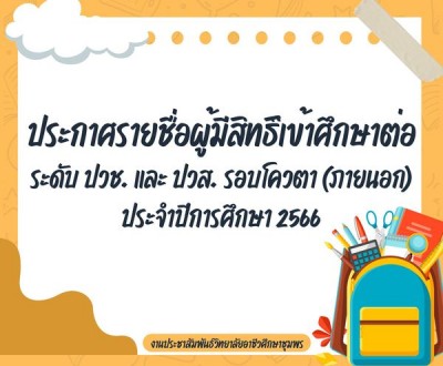 ประกาศรายชื่อผู้มีสิทธิ์เข้าศึกษาต่อ ระดับชั้นประกาศนียบัตรวิชาชีพ (ปวช.) กรณีพิเศษ รอบโควตา และระดับชั้นประกาศนียบัตรวิชาชีพชั้นสูง(ปวส.) กรณีพิเศษ รอบโควตา (ภายนอก) ประจำปีการศึกษา 2566