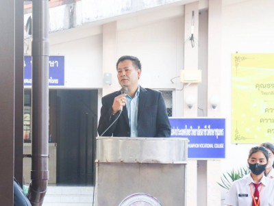 รองผู้อำนวยการวิทยาลัยอาชีวศึกษาชุมพร ฝ่ายบริหารงานทรัพยากร ได้ขึ้นให้คำแนะนำแก่นักเรียน นักศึกษา ในเรื่อง 3ร. รู้ตัวตน รู้หน้าที่ รู้เป้าหมาย และเชิญชวนให้คณะครู บุลากรทางการศึกษา และนักเรียน นักศึกาา ร่วมส่งกำลังใจให้แก่ตัวแทนผู้เข้าแข่งขันทักษะวิชาชีพและทักษะพื้นฐานในงานประชุมวิชาการองค์การนักวิชาชีพในอนาคตแห่งประเทศไทย ระดับชาติ ครั้งที่ 31 ประจำปีการศึกษา 2565