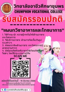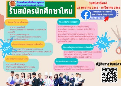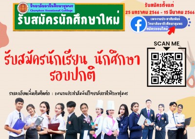 วิทยาลัยอาชีวศึกษาชุมพร รับสมัครนักเรียน นักศึกษา (รอบปกติ) ประจำปีการศึกษา 2566
