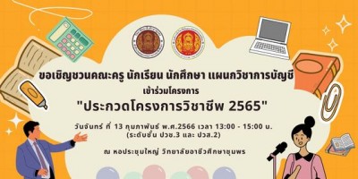 ประกาศ ขอเชิญชวนคณะครู นักเรียน นักศึกษา แผนกวิชาการบัญชี เข้าร่วมโครงการ ประกวดโครงานวิชาชีพ 2565