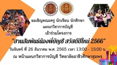 ขอเชิญคณะครู นักเรียน นักศึกษา แผนกวิชาการบัญชี เข้าร่วมโครงการ สานสัมพันธ์น้องพี่บัญชี สวัสดีปีใหม่ 2566