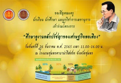 ขอเชิญคณะครู นักเรียน นักศึกษา แผนกวิชาการเลขานุการ เข้าร่วมโครงการ ศึกษาดูงานหลักปรัชญาของเศรษฐกิจพอเพียง