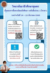 ขั้นตอนการขึ้นทะเบียนนักศึกษา ระดับชั้น ปวส.1 (รอบโควตา) ระหว่างวันที่ 19 - 23 ธันวาคม 2565 👉คู่มือการใช้งานระบบรับสมัครนักเรียน นักศึกษา