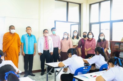 สำนักพระพุทธศาสนาจังหวัดชุมพร พร้อมคณะผู้ตรวจสนามสอบแม่กองธรรมพร้อมด้วยคณะผู้บริหาร ร่วมเยี่ยมชมนักเรียน นักศึกษา ที่เข้าสอบวัดความรู้การศึกษาพระปริยัติธรรมของแผนกธรรม หลักสูตรธรรมศึกษา ระดับชั้นตรี ชั้นโทและขั้นเอก ประจำปีการศึกษา 2565