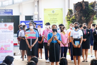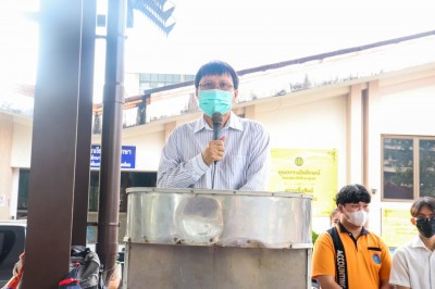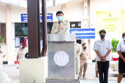 รองผู้อำนวยการวิทยาลัยอาชีวศึกษาชุมพร ให้การอบรมนักเรียน นักศึกษาในกิจกรรมหน้าเสาธง ตัวแทนนักเรียน เจ้าของธุรกิจผงโรยข้าวไตปลาเห็ดแครง นำเสนอผลิตภัณฑ์ ในโครงการอาชีวะสร้างสรรค์ แปรฝันสู่ธุรกิจ ประจำปี 2565