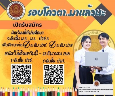 เปิดรับสมัครนักเรียน นักศึกษา ที่กำลังศึกษาอยู่ในระดับชั้น ม.3 , ม.6 , ปวช.3 เพื่อเข้าศึกษาต่อ