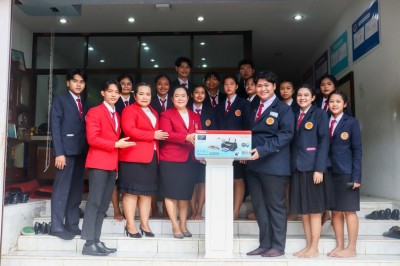 รองผู้อำนวย ฝ่ายพัฒนากิจการนักเรียน นักศึกษา ให้เกียรติมอบเครื่องพริ้นเตอร์ กับ นายก อวท.วอศ.ชุมพร ประจำปี 2565