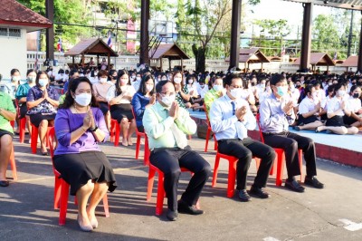 คณะผู้บริหาร คณะครู บุคลากรทางการศึกษา และนักเรียน นักศึกษา วิทยาลัยอาชีวศึกษาชุมพร ร่วมสวดมนต์ทำนองสรภัญญะ ในวันพระแรม 15 ค่ำ เดือน 12