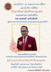 ขอแสดงความยินดีกับ ดร.ณรงค์ แก้วสิงห์ ผู้อำนวยการวิทยาลัยประมงชุมพรเขตรอุดมศักดิ์