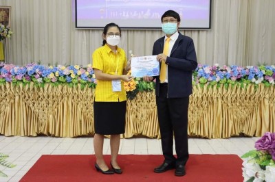 มอบเงินแก่นางสาวพรทิพย์ สิทธิศักดิ์ ตำแหน่งแม่บ้าน วิทยาลัยอาชีวศึกษาชุมพร
