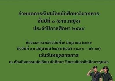 สมัครนักศึกษาวิชาทหารชั้นปีที่1