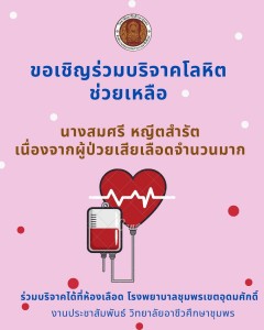 ขอเชิญนักเรียน นักศึกษา ที่มีจิตกุศล ร่วมบริจาคโลหิต (กรุ๊ปใดก็ได้)