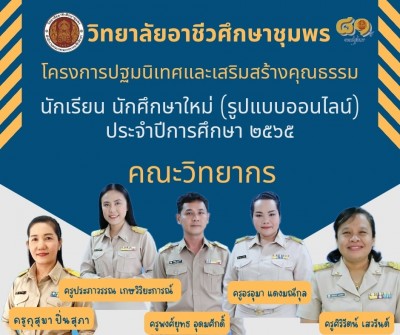 โครงการปฐมนิเทศ นักเรียนระดับชั้นปวช.1 นักศึกษาระดับชั้นปวส.1 วิทยาลัยอาชีวศึกษาชุมพร ประจำปีการศึกษา 2565
