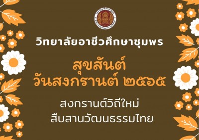 นายประทีป แป้นแก้ว ผู้อำนวยการวิทยาลัยอาชีวศึกษาชุมพร ได้มอบหมายให้นายจิรพงษ์ โลพิศ รองผู้อำนวยการวิทยาลัยอาชีวศึกษาชุมพร เป็นประธานพิธีรดน้ำผู้ใหญ่ เนื่องในเทศกาลสงกรานต์ประจำปี 2565 จำนวน 5 คน
