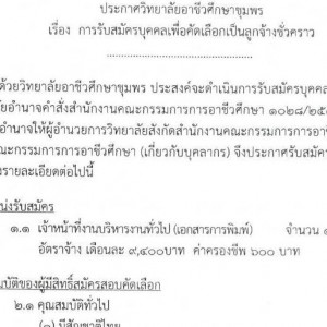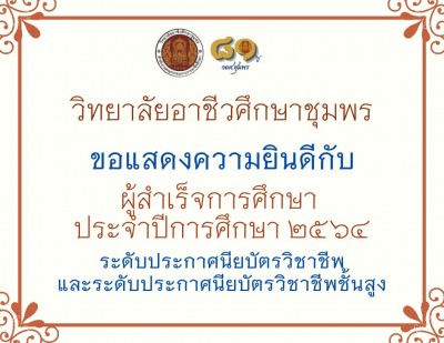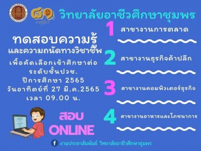 การประกาศรายชื่อผู้สมัครที่มีสิทธิ์ทดสอบเข้าศึกษาต่อวิทยาลัยอาชีวศึกษาชุมพร