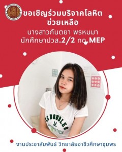บริจาคโลหิตช่วยชีวิตเพื่อนนักศึกษา