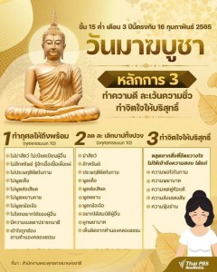 วันนี้วันพระ ขึ้น 15 ค่ำ เดือน 3 วันมาฆบูชา ปีนี้ตรงกับ 16 กุมภาพันธ์ 2565