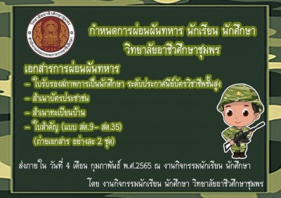 วิทยาลัยอาชีวศึกษาชุมพร #กำหนดการผ่อนผันทหาร นักเรียนนักศึกษา