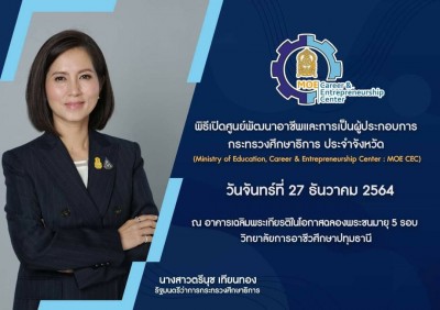 สอศ.ขอเชิญรับชม ถ่ายทอดสด พิธีเปิดศูนย์พัฒนาอาชีพและการเป็นผู้ประกอบการ กระทรวงศึกษาธิการ ประจำจังหวัด