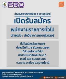 สำนักประชาสัมพันธ์เขต5เปิดรับสมัครบุคคลเพื่อจัดจ้างเป็นพนักงานราชการ
