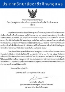 ประกาศวิทยาลัยอาชีวศึกษาชุมพร เรื่องกำหนดรูปแบบการเรียน การสอน ประจำภาคเรียนที่ ๒ ปีการศึกษา ๒๕๖๔ (ครั้งที่ ๒)