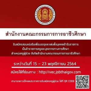 สำนักงานคณะกรรมการการอาชีวศึกษา รับสมัครสอบแข่งขันเพื่อบรรจุและแต่งตั้งบุคคลเข้ารับราชการเป็นข้าราชการครูและบุคลากรทางการศึกษา