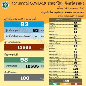 ยอดรายใหม่83คน วันศุกร์ที่ 12 พฤศจิกายน 2564