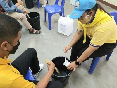 วันที่ 5 พฤศจิกายน 2564 ที่แผนกวิชาสามัญสัมพันธ์ วิทยาลัยอาชีวศึกษาชุมพร นางจุรีวรรณ อรัญพฤกษ์ รองผู้อำนวยการฝ่ายแผนงานและความร่วมมือ พร้อมด้วยคณะครูประจำแผนกวิชาสามัญสัมพันธ์ วิทยาลัยอาชีวศึกษาชุมพร ร่วมแรงร่วมใจผลิตเจลแอลกอฮอล์และสบู่เหลวล้างมือ
