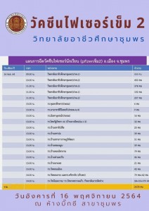 📌กำหนดการฉีดวัคซีนไฟเซอร์ วิทยาลัยอาชีวศึกษาชุมพร #เข็มที่2 วันอังคารที่ 16 พฤศจิกายน 2564 ณ ห้างบิ๊กซี สาขาชุมพร ตำบลวังไผ่ อำเภอเมืองชุมพร