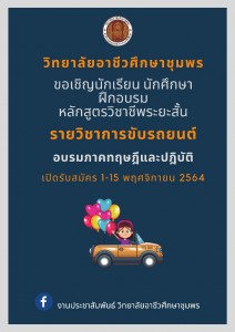 วิทยาลัยอาชีวศึกษาชุมพรเปิดสอนหลักสูตรวิชาชีพระยะสั้นรายวิชาการขับรถยนต์