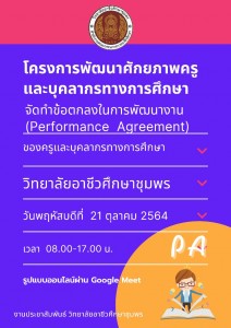 วิทยาลัยอาชีวศึกษาชุมพร กำหนดจัดโครงการพัฒนาศักยภาพครูและบุคลากรทางการศึกษา จัดทำข้อตกลงในการพัฒนางาน (Performance Agreement: PA)