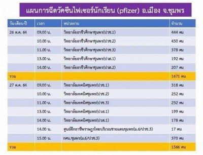 การฉีดวัคซีนไฟเซอร์นักเรียนนักศึกษาวิทยาลัยอาชีวศึกษาชุมพร