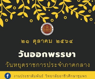 จดหมายข่าวประชาสัมพันธ์ วิทยาลัยอาชีวศึกษาชุมพร ฉบับวันที่ 21 ตุลาคม 2564