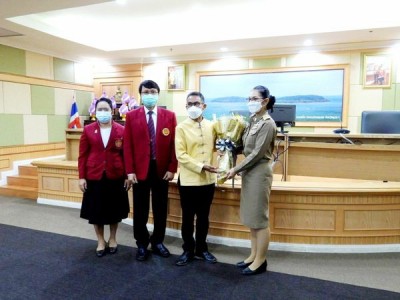 นายประทีป แป้นแก้ว ผู้อำนวยการวิทยาลัยอาชีวศึกษาชุมพร ประธานกรรมการอาชีวศึกษาชุมพร มอบกระเช้าสวัสดีปีใหม่